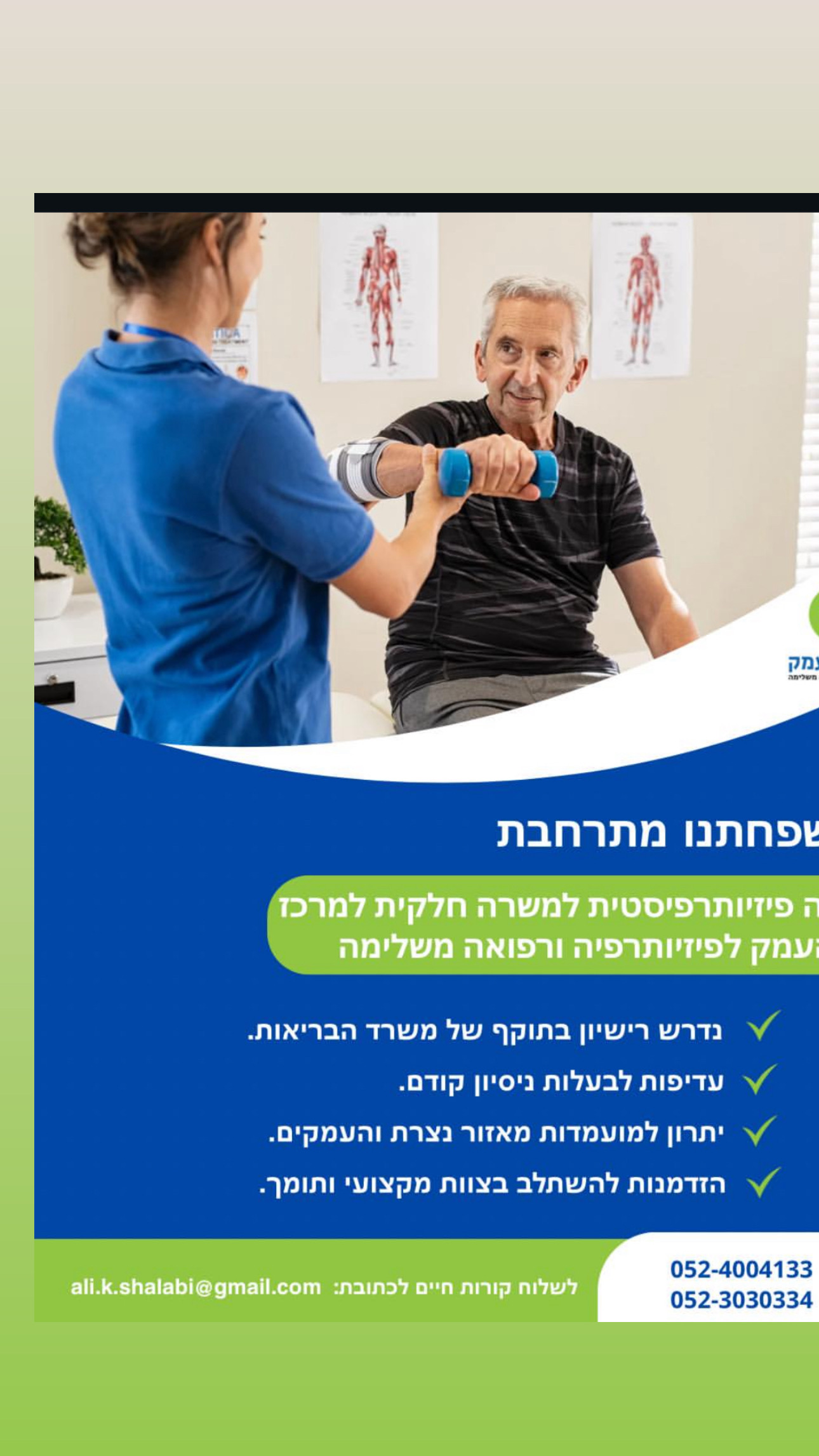 📢 דרוש/ה פיזיותרפיסט/ית – מרפאת באכסאל