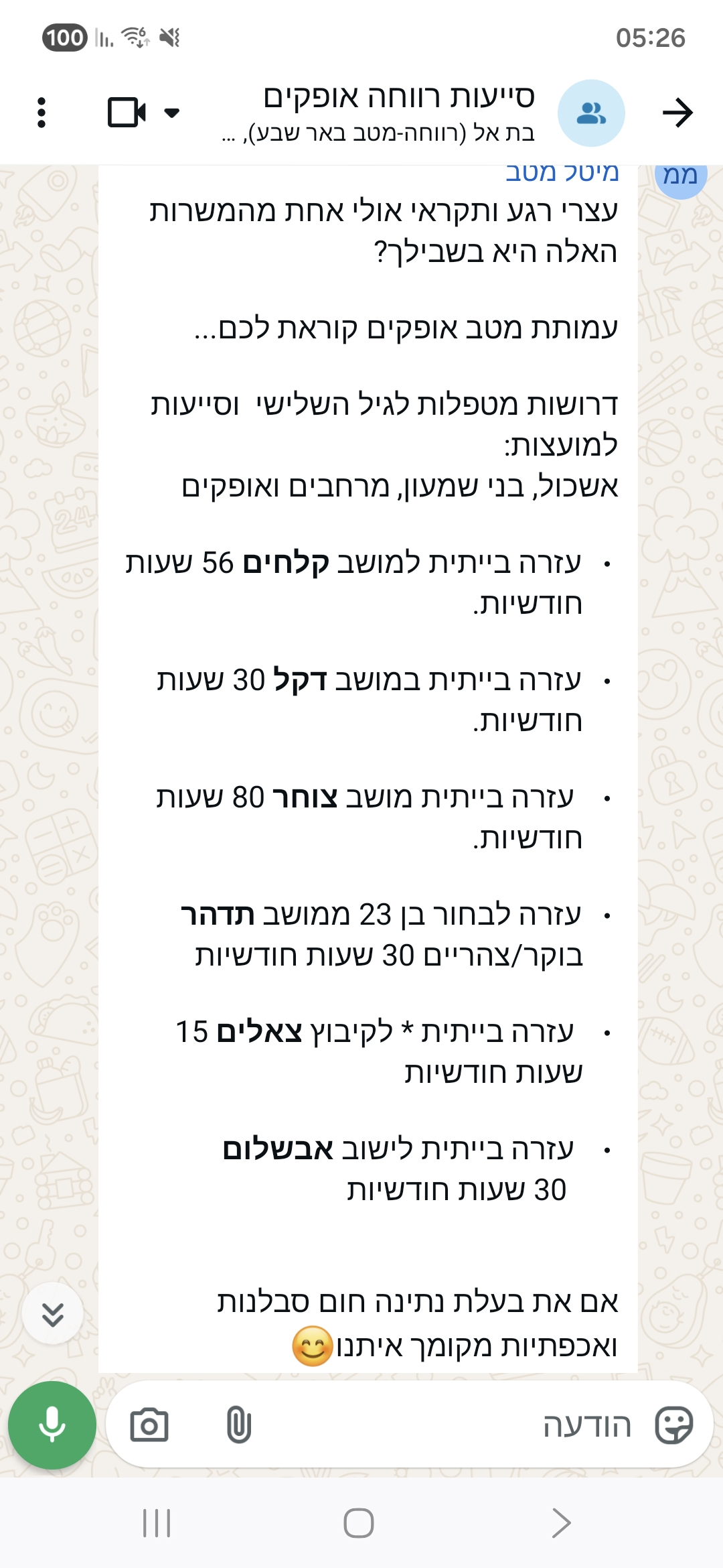 • ליווי ותמיכה במקבלי השירות שלנו , במשפחותיהם ובצוות.