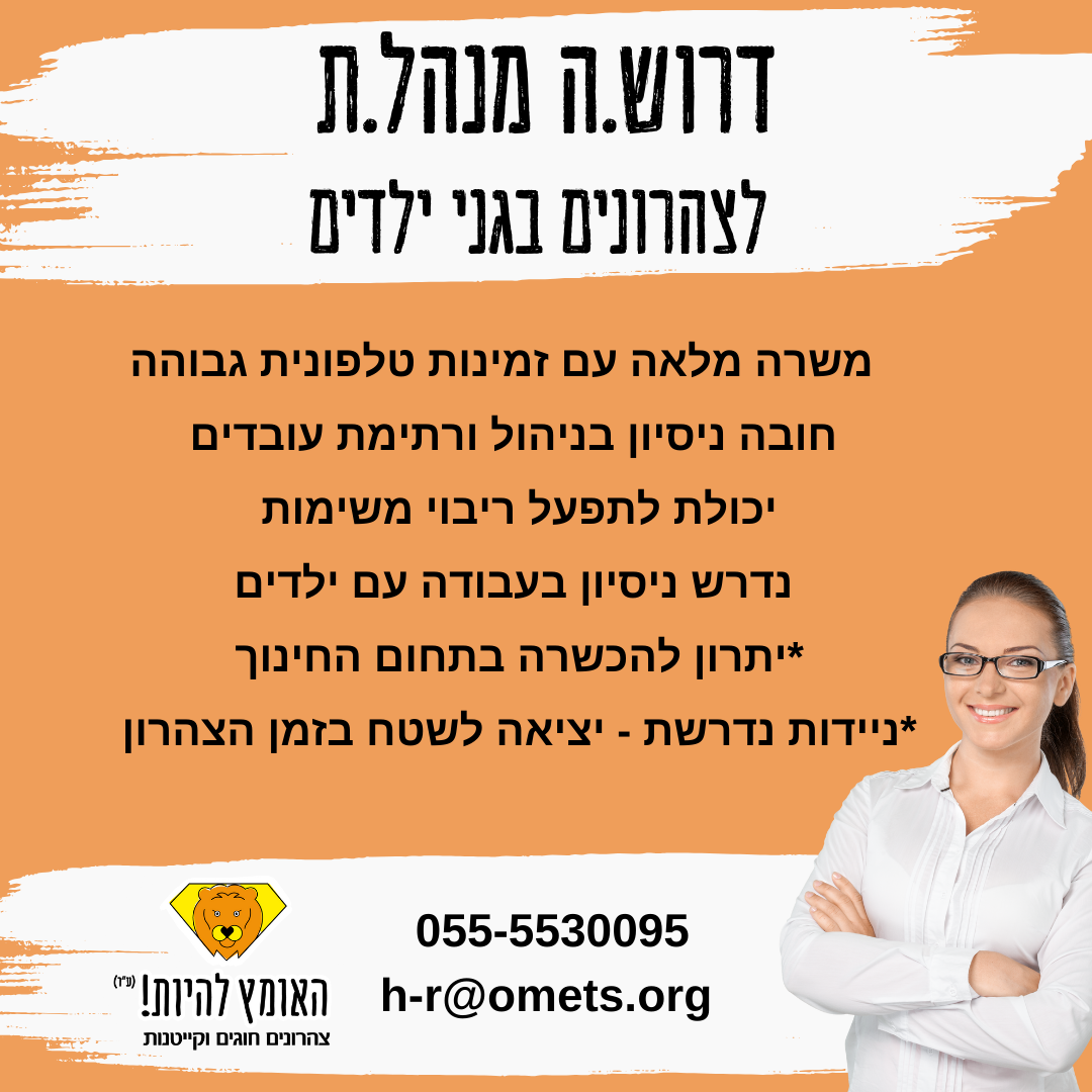 דרוש/ה מנהל/ת צהרון עם ניסיון בהדרכה ומדריכ/ה חברתי/ת