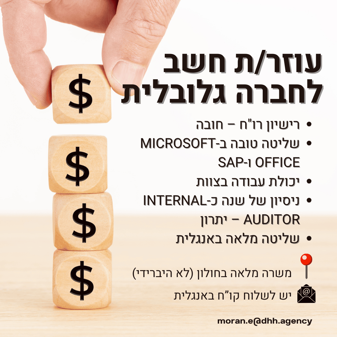 בחברה גלובלית עם מותגים אהובים , מחכה לך הזדמנות להיכנס לתפקיד משמעותי ולהיות חלק מצוות פיננסים גלובלי, איכותי ומקצועי.