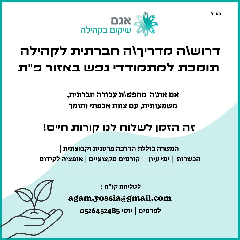 דרושים/ות מדריכי /ות שיקום לקהילה משקמת של מתמודדי נפש בבאר שבע.