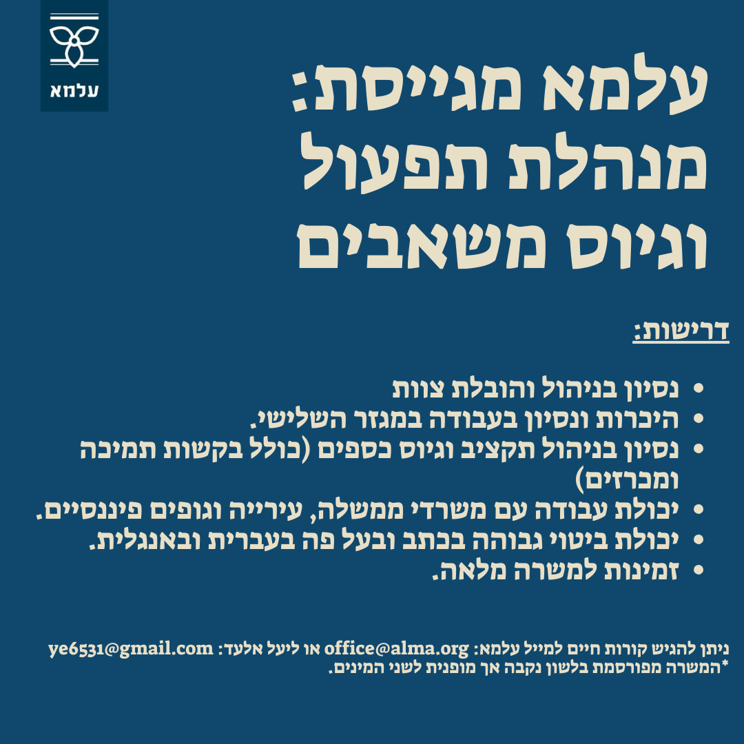מנהל/ת תפעול וגיוס משאבים בעמותה