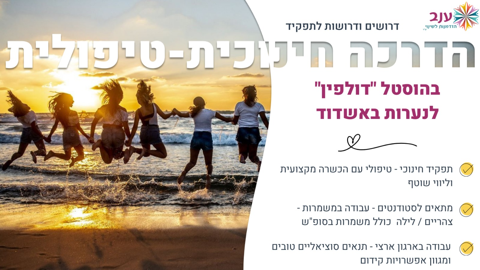 בתקופה מאתגרת זו הנערות שלנו זקוקות לכם יותר מתמיד! להוסטל לנערות בסיכון באשדוד דרושים/ות מדריכים/ות לעבודה במשמרות.