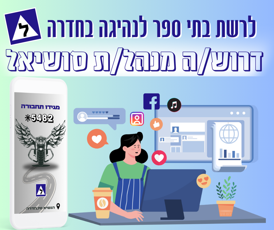 לרשת בתי ספר לנהיגה בחדרה דרוש/ה מנהל/ת סושיאל📲