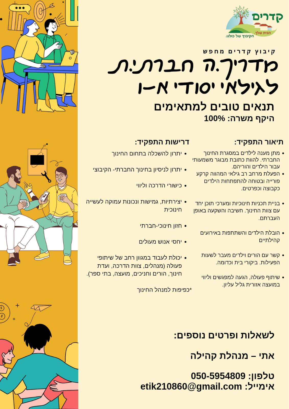 + ניסיון ניהולי בעבודה עם בני נוער וצוות עובדים